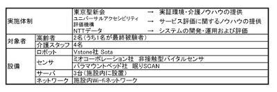 この実証実験は、ロボットの介護現場への導入はコミュニケーションパワー技術系では現実のものとなっているが、コミュニケーションロボットシステムの導入は、はたして介護現場で有効なのかを検証するものです。