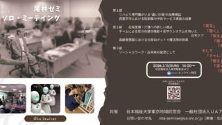 お知らせ 尾林ゼミ ソロ・ミーティングを開催します 2019年7月の発足以来、地域学習会としてソーシャルワークの学びを深めてきた尾林ゼミ。尾林和子が日本福祉大学を退官後も、各方面からご要望をいただいて、たびたび学習会を開催してきました。今回も日本福祉大学東京地域同窓会と共催でソロ・ミーティン... 2026.01.23 お知らせ研修会